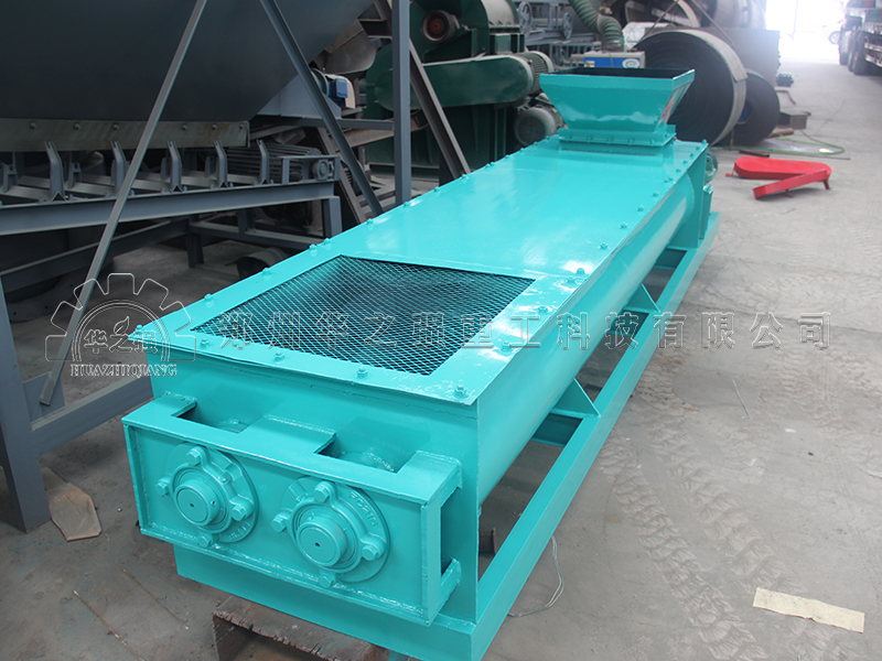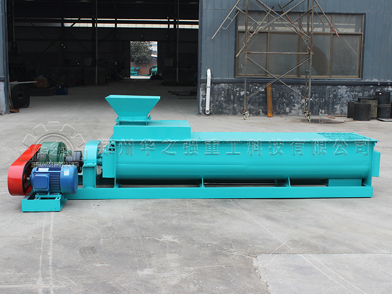 The double axis mixer is rotated through two groups of screw shafts with spiral blade, and water is added water to the powder material for spraying wet mixing transportation, so that powdery material can achieve controllable humidity. The equipment is mainly suitable for humidification and mixing of raw materials in the fertilizer industry, so that the materials are fully mixing and this machine have the function of conveying too. When the quantity of raw material is poured into the mixing tank from the outlet, the raw material is atomized by a number of water with relative pressure, which is stirred by the mixing shaft of the qualitative length to form a uniform water-containing core. The whole agitation is divided into three areas: atomization area, mixing area and discharge area. The agitator leaves have well wear resistance and long service life.